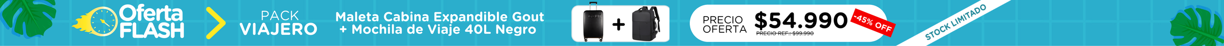 ✈️PACK Exclusivo Maleta Cabina GOUT y Mochila Viaje Viral Cabina 40L. Negro