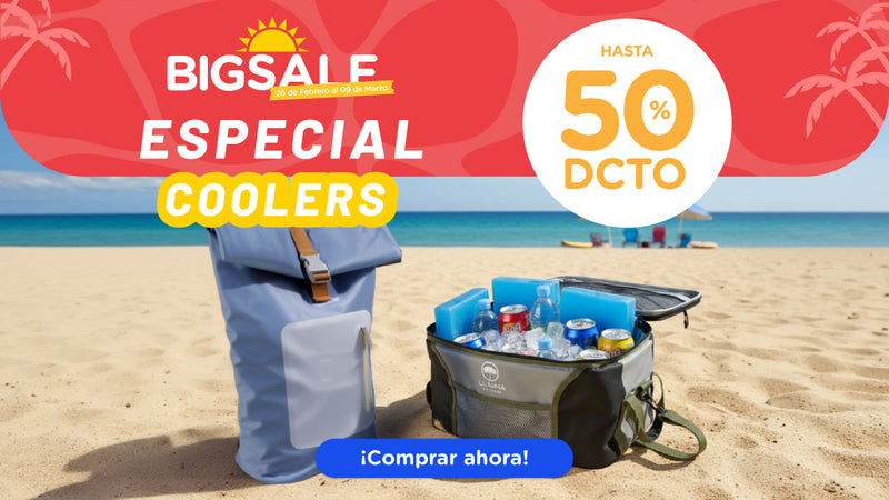 Combo Bolso Cooler Impermeable 16.5Lt Beige + 1 Toalla de Playa Redonda 150 cm. Colores surtidos.