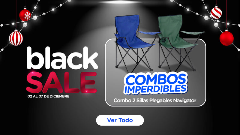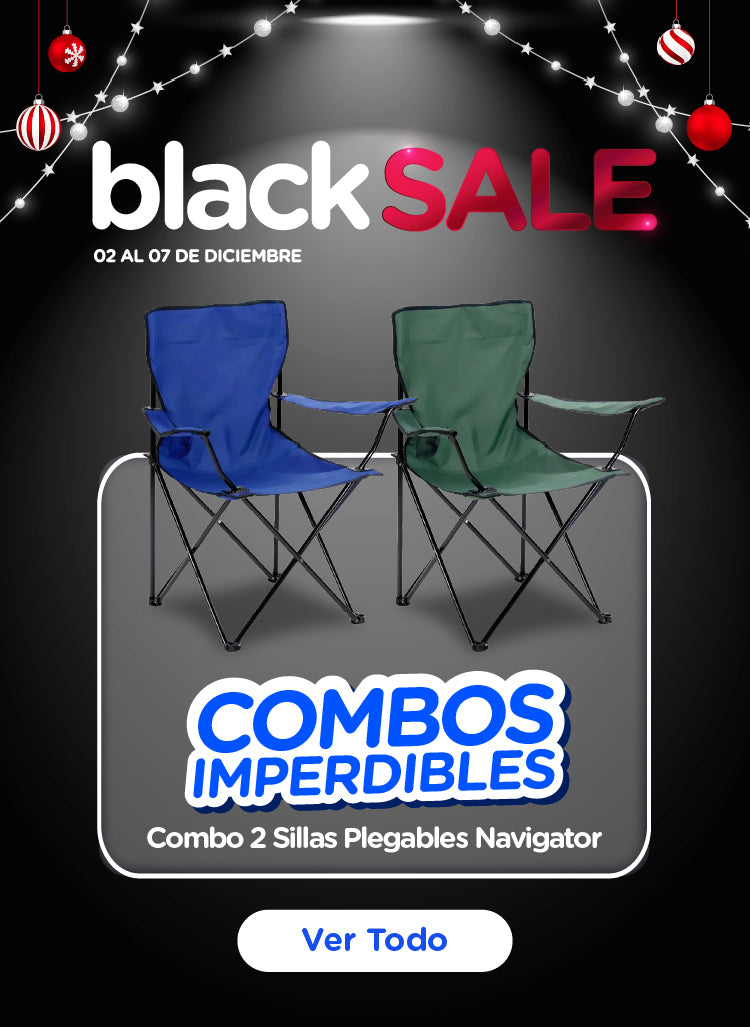 Combo 2 Sillas Plegables Apoya Brazos Negro y Celeste Navigator