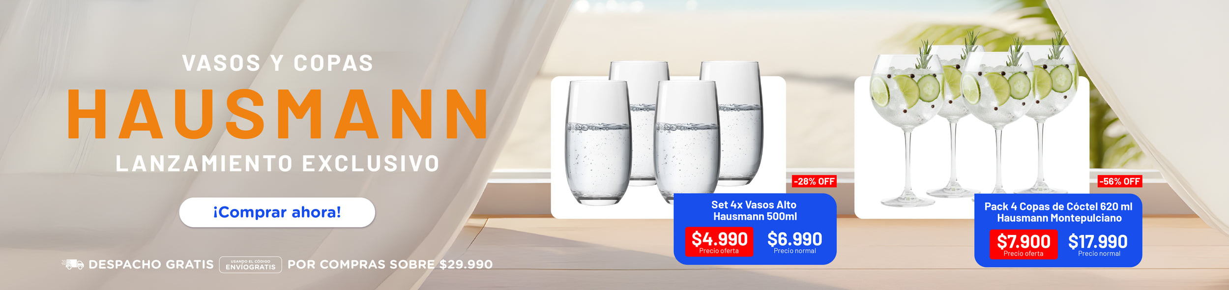 Combo 16 Vasos Hausmann: 8 Vasos Altos 500 ml y 8 Vasos Bajos 610 ml