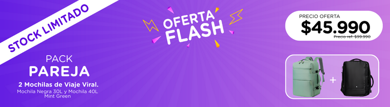 Combo 2 Mochilas de Viaje Viral Cabina. 1 Mochila Negra 30L y 1 Mochila 40L Mint Green