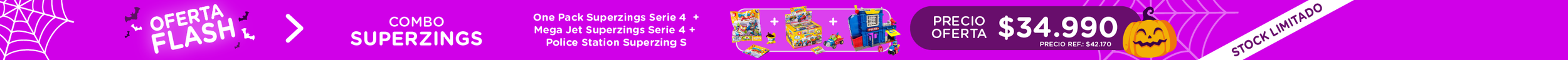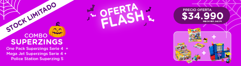 No reviewsCombo SUPERZINGS: One Pack Superzings Temporada 4 + Mega Jet Superzings Serie 4 + Police Station Superzings SPrecio habitual $34.990Precio unitario / porPrecio habitual-17%$42.170Precio de oferta $34.990Oferta