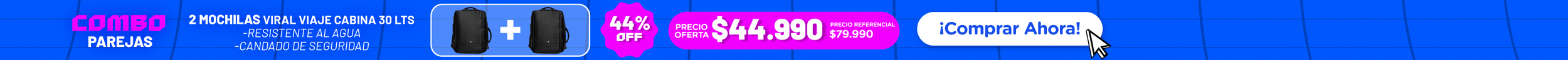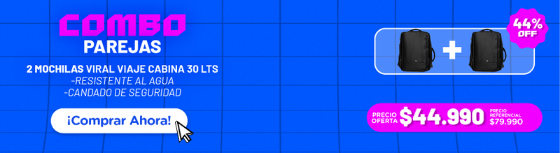 Combo 44% OFF: 2 Mochilas de Viaje Viral Cabina 30L. Resistente al Agua y con Candado de Seguridad