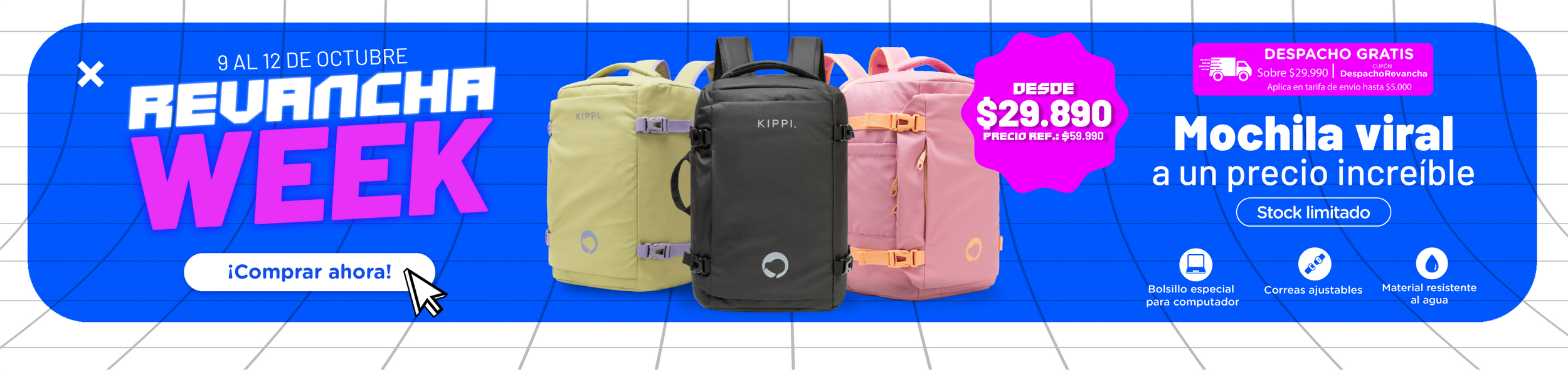 Combo: Mochila de Viaje Cabina. Resistente al Agua. 45 L Kippi Negro + Mochila de Viaje Viral Cabina 45L. Kippi Rosada. Resistente al Agua