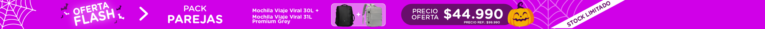 Combo 2 Mochilas de Viaje Viral Cabina 30L. Resistente al Agua y con Candado de Seguridad