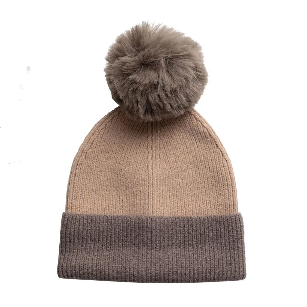 Gorro de punto color rosa palo, con 2 pompones intercambiables, uno de lana acrílica, y otro imitación piel. Es el accesorio ideal para complementar tu vestimenta, perfecto para llevarlo contigo para días de frío. Modelo versátil y adaptable. Hecho con material reciclado.