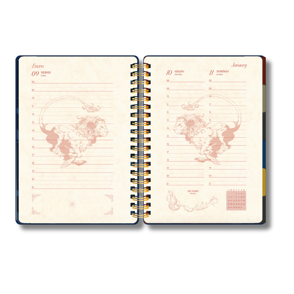 • Encuadernado: Anillado metálico dorado