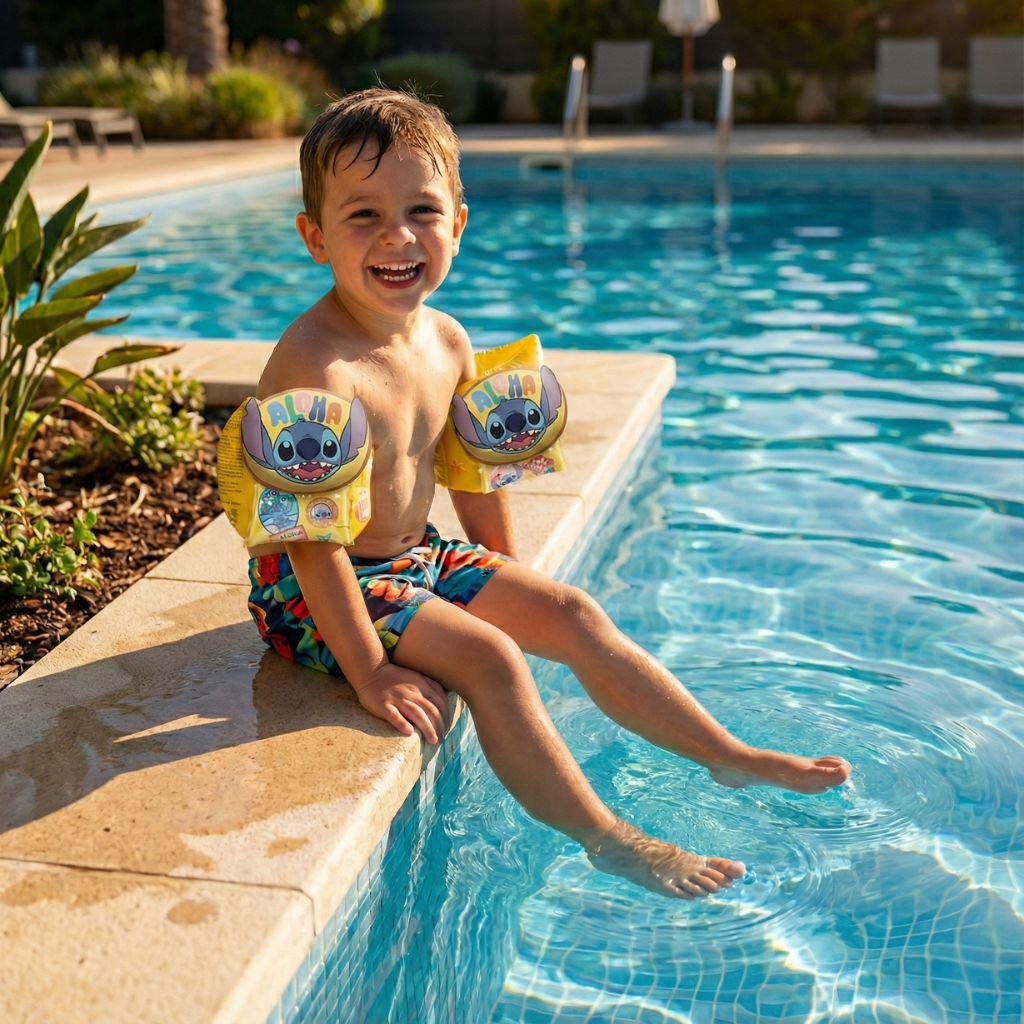 Flotadores de brazo con licencia oficial Disney, inspirados en Stitch. Con un diseño divertido con un círculo en 3D con la cara de Stitch y el texto Aloha, estos flotadores son fáciles de inflar y brindan apoyo a los pequeños nadadores. Fabricados con materiales duraderos y de alta calidad, estos flotadores inflables aportan comodidad y seguridad, convirtiéndose en el accesorio perfecto para disfrutar en piscinas, playas y otros entornos acuáticos.
