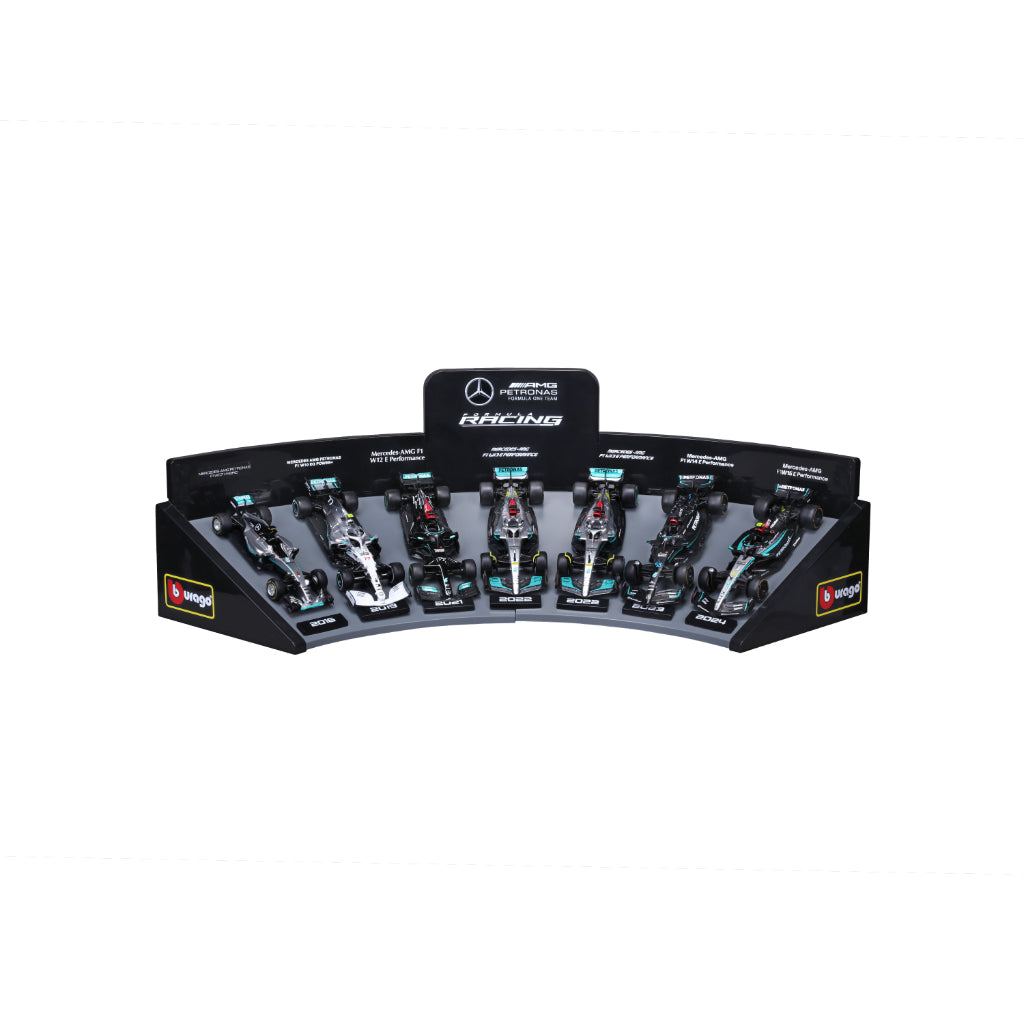 Cada auto representa una temporada y un momento inolvidable de excelencia en ingeniería, desempeño y conducción, convirtiendo este set en una pieza imprescindible para quienes valoran la evolución y el legado competitivo de Mercedes-AMG Petronas F1 Team.