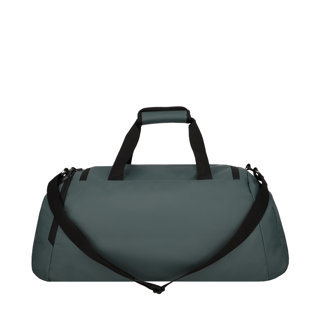 Bolso deportivo de 40 litros, ideal para gimnasio, escapadas o viajes cortos, con un diseño pensado para la organización y el uso diario. Cuenta con compartimento principal, bolsillo frontal, bolsillo lateral para zapatos y correa de hombro ajustable y desmontable para mayor comodidad al transportar. Su material es repelente al agua y de fácil limpieza, perfecto para un estilo de vida activo. Además, su forro está hecho con botellas recicladas, aportando un enfoque más responsable.