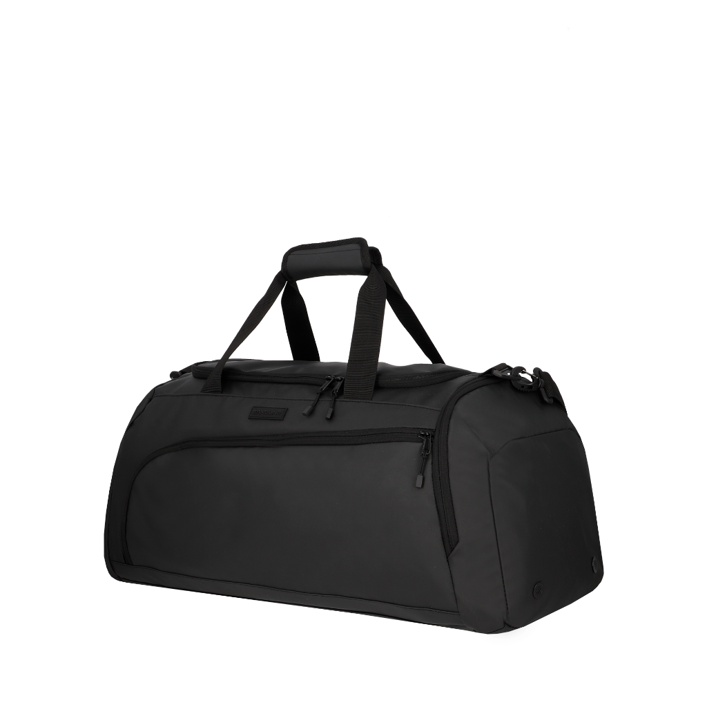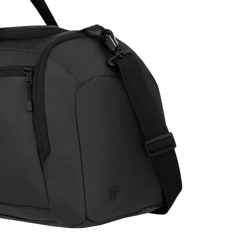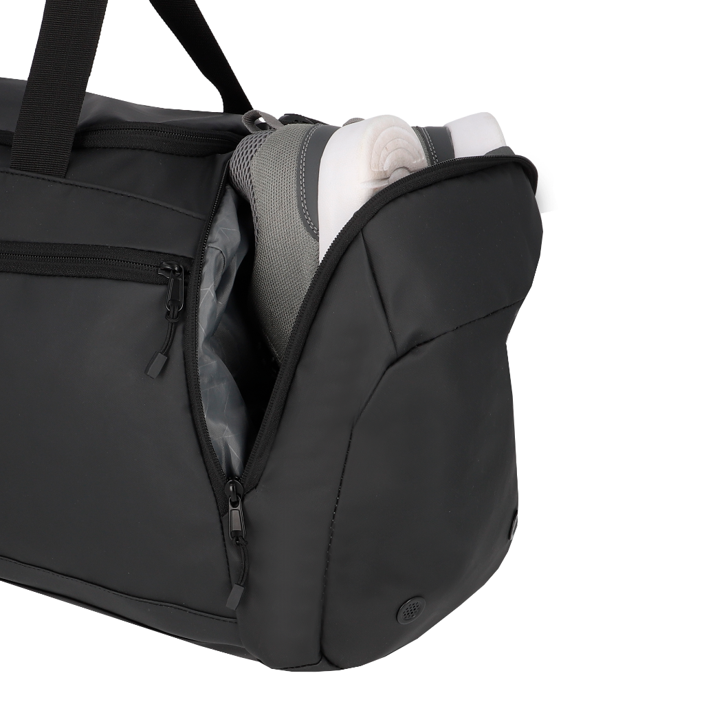 Bolso deportivo de 40 litros, ideal para gimnasio, escapadas o viajes cortos, con un diseño pensado para la organización y el uso diario. Cuenta con compartimento principal, bolsillo frontal, bolsillo lateral para zapatos y correa de hombro ajustable y desmontable para mayor comodidad al transportar. Su material es repelente al agua y de fácil limpieza, perfecto para un estilo de vida activo. Además, su forro está hecho con botellas recicladas, aportando un enfoque más responsable.