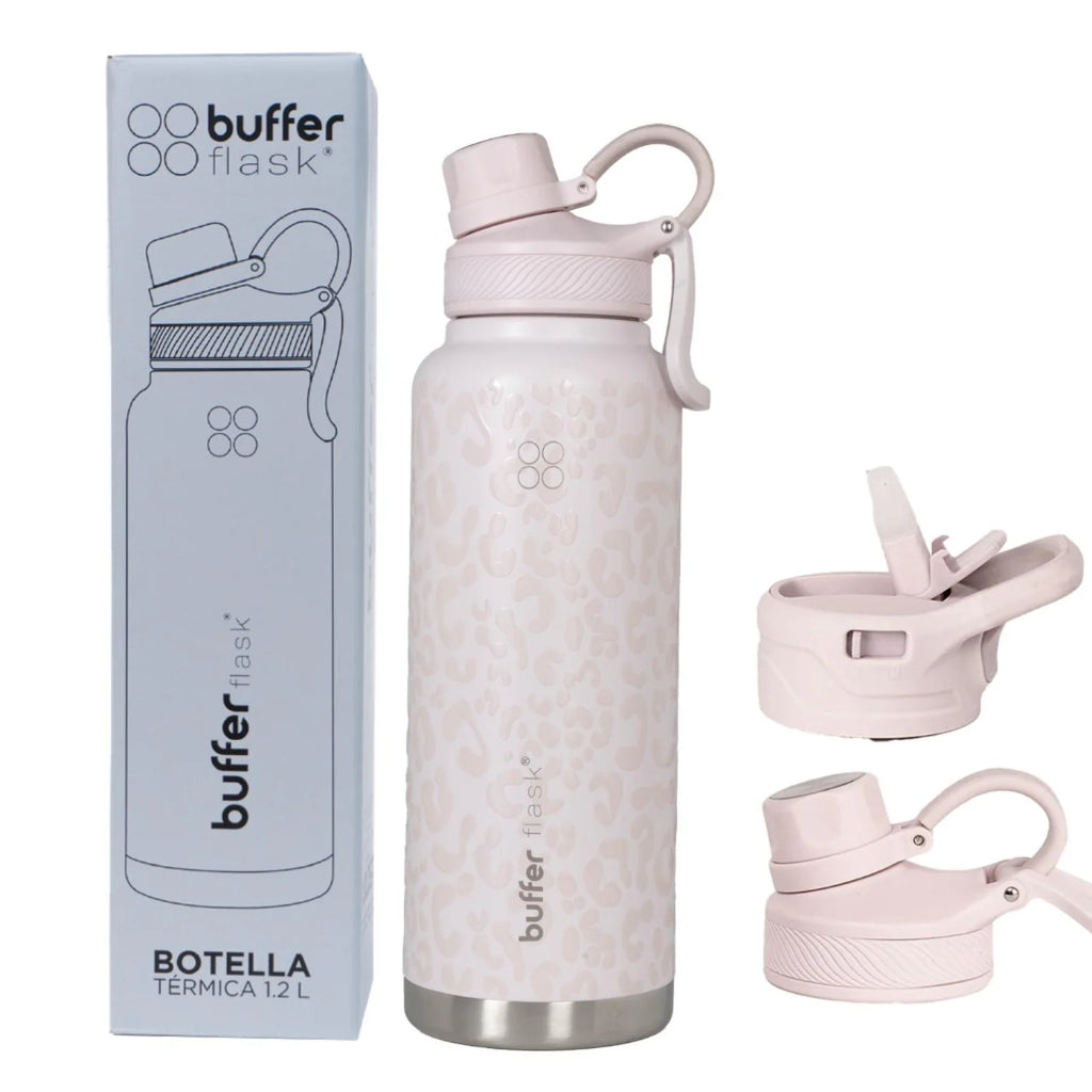 Botella Agua Térmica Buffer Paine 1,2Lt + 2 Tapas Pinky LeopardoDescripción