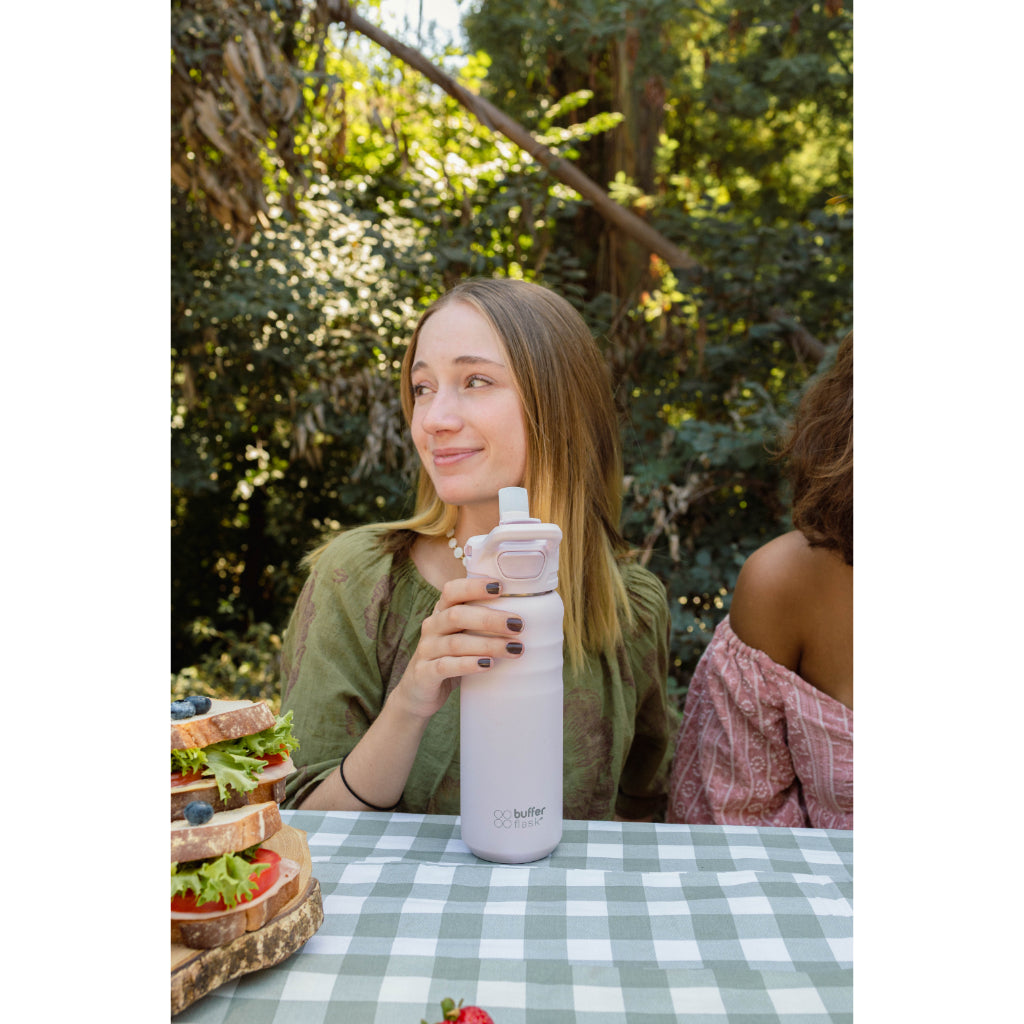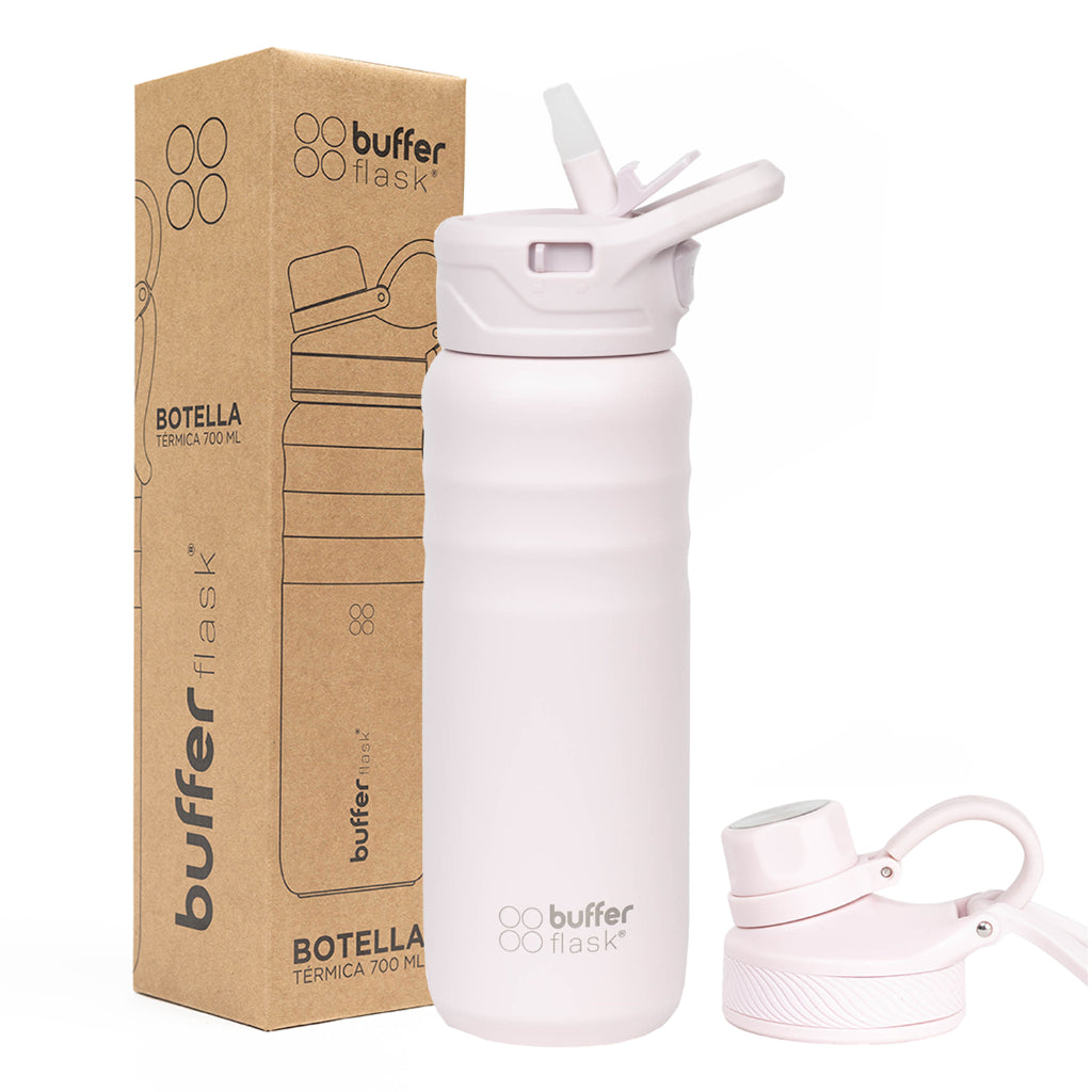 Tu ritmo, tu momento, tu tranquilidad. Comodidad, seguridad e hidratación ante todo! La botella térmica Buffer de 700 ml te permitirá mantenerte hidratado durante más tiempo, sin perder su temperatura, diseñada pensando en tu comodidad, incluye 2 tapas para poder ocuparla en distintos contextos. - Gran capacidad y comodidad: Cuenta con un diseño práctico y fácil de transportar, su tamaño es ideal para llevar contigo en todas, cuenta con 2 tapas para que puedas elegir tu favorita según tus necesidades del momento. - Te ayudará a llevar tus bebestibles con mucho estilo, ideal para mantenerte sano tomando la cantidad correcta de agua al día. - Sabemos que es importante la temperatura dentro de tu botella, por eso tu botella térmica Buffer se mantiene ¡24 horas fría y 12 horas caliente! - Ideal para ocupar con bebidas frías y calientes: Las botellas Buffer se caracterizan por ser multifacéticas, es por esto que te permiten mantener bebidas frías y calientes sin problema. - Tapa con sistema a prueba de fugas. - Su doble pared aislada al vacío, permite mantener la temperatura de los líquidos por mayor tiempo y al evitar la transferencia de temperatura elimina el riesgo de quemarte al portar líquidos calientes. - Tu botella Buffer no suda! No te volverás a encontrar con objetos o superficies mojadas alrededor. - Su manilla te ayudará a transportarla fácil y cómodamente. - Perfecta para acompañarte en tu día a día, salidas al cerro, paseos, trabajo y mucho más. - Práctica y fácil de llevar contigo a todos lados, ideal para utilizar en invierno y verano. FICHA TÉCNICA: - Botella con 700 ml con 2 tapas Buffer - Capacidad: 700 ml - Diseño cómodo de tomar. - Libres de BPA - Para bebidas frías y calientes - Incluye 2 tapas para distintos usos - Material Interior: Acero 100% inoxidable 304