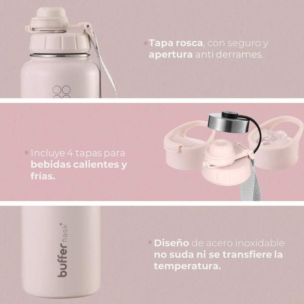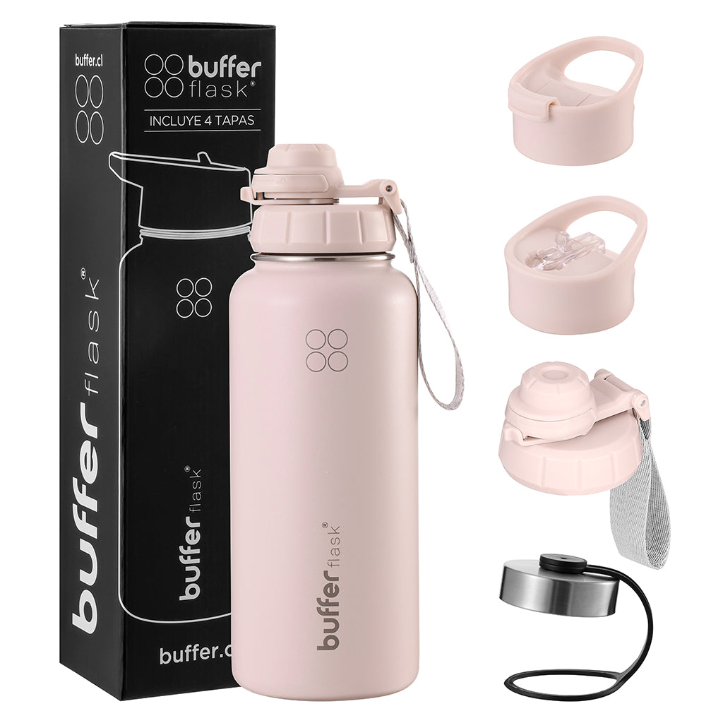 Botella Térmica Buffer Acero Inoxidable 950ml +4 Tapas Rosa PastelDescripción