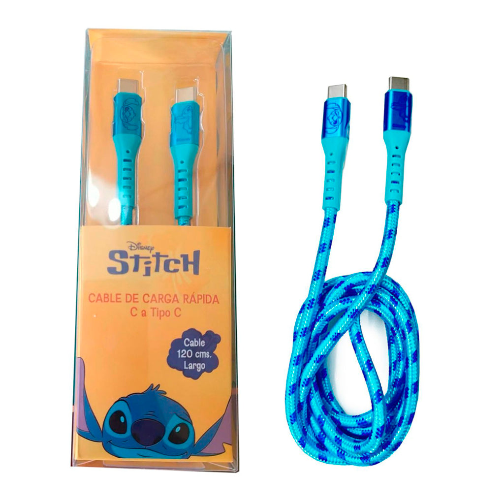 Carga tu celular con el estilo de Stitch. Mide 120 cms y cada terminal es USB Tipo C.