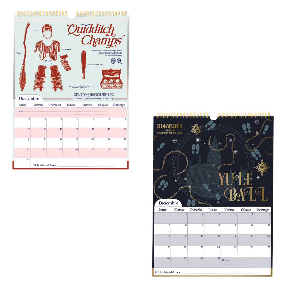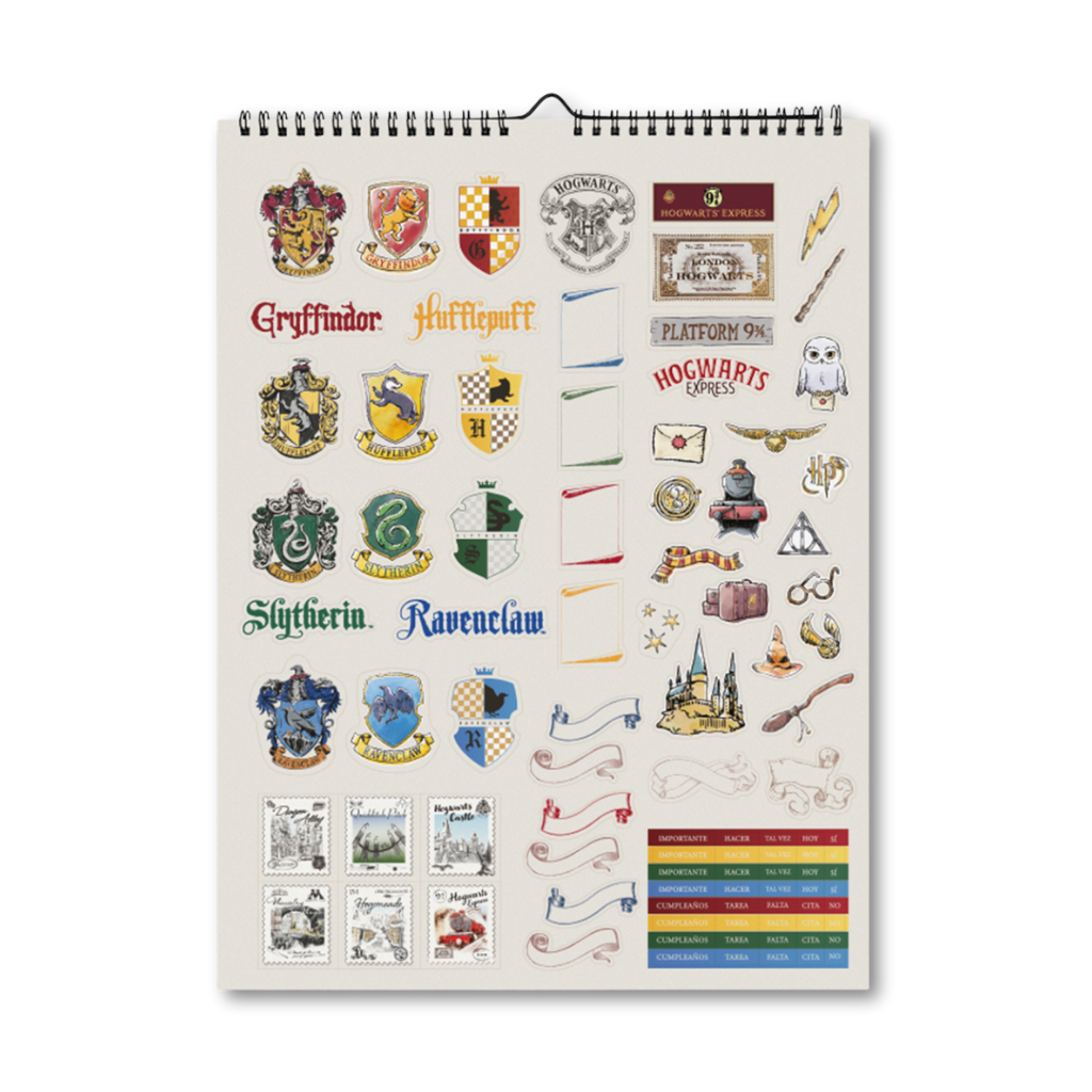 Vive la magia de Hogwarts durante todo el año con el Calendario Harry Potter 2026. Cada mes presenta los emblemas y colores de las casas más emblemáticas —Gryffindor, Hufflepuff, Ravenclaw y Slytherin— junto a detalles encantadores inspirados en el universo mágico. Incluye stickers con símbolos icónicos para decorar tus fechas importantes y personalizar tus planes con el toque mágico que solo Harry Potter puede ofrecer.