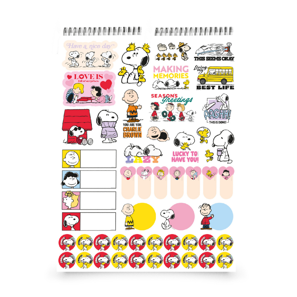 Llena tu año de buenas vibras con el estilo relajado y encantador de Snoopy y sus amigos. El Calendario Snoopy 2026 combina humor, color y ternura en cada mes, con ilustraciones llenas de actitud y frases que inspiran a disfrutar cada día. Incluye una lámina de stickers temáticos para decorar tus fechas especiales y mantenerte organizado con un toque divertido.