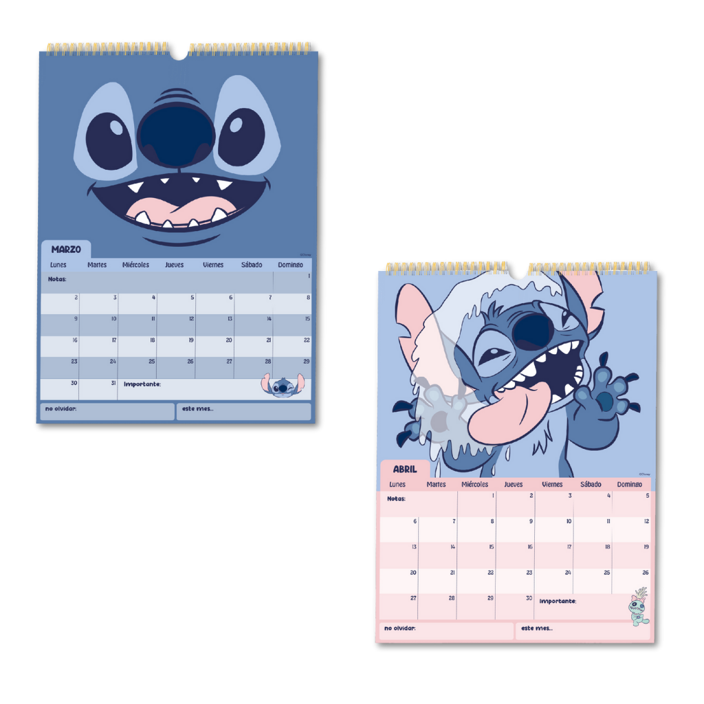 Comienza el año con toda la energía y ternura del personaje más travieso de Disney. El Calendario Stitch 2026 está diseñado para llenar tus días de color y diversión, con ilustraciones adorables y vibrantes en cada mes. Incluye stickers temáticos para personalizar tus planes, anotar momentos importantes y mantener tu organización con estilo. Perfecto para colgar y disfrutar durante todo el año.