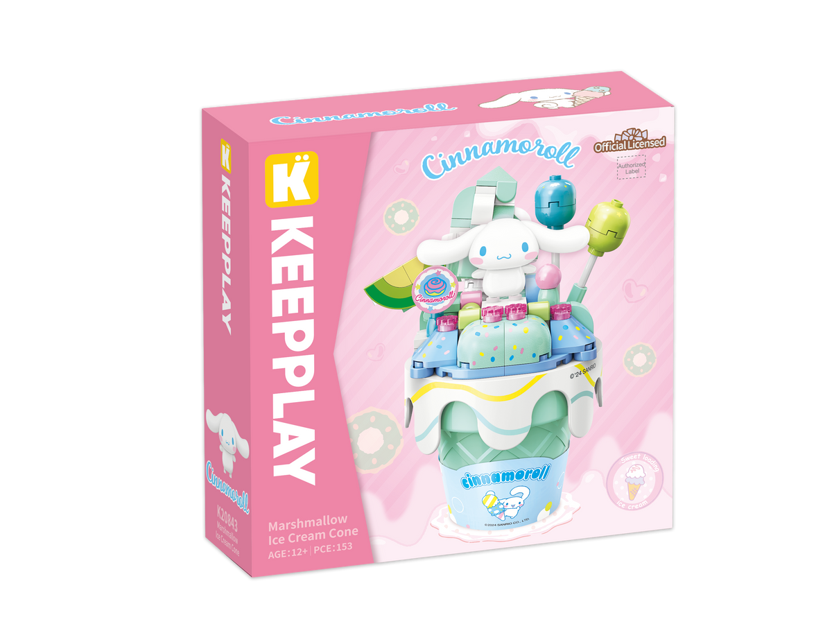 Vive la ternura y creatividad con el set Cinnamoroll Bloques Armables de Keeppley x Sanrio. Este encantador modelo en forma de helado combina el estilo dulce de Cinnamoroll con el diseño artístico de Sweet Jane, logrando una pieza ideal para construir, decorar o regalar. Con su base elevada, molde exclusivo y colores suaves inspirados en el marshmallow, este set de 153 piezas ofrece una experiencia divertida y relajante para coleccionistas y amantes de Sanrio.