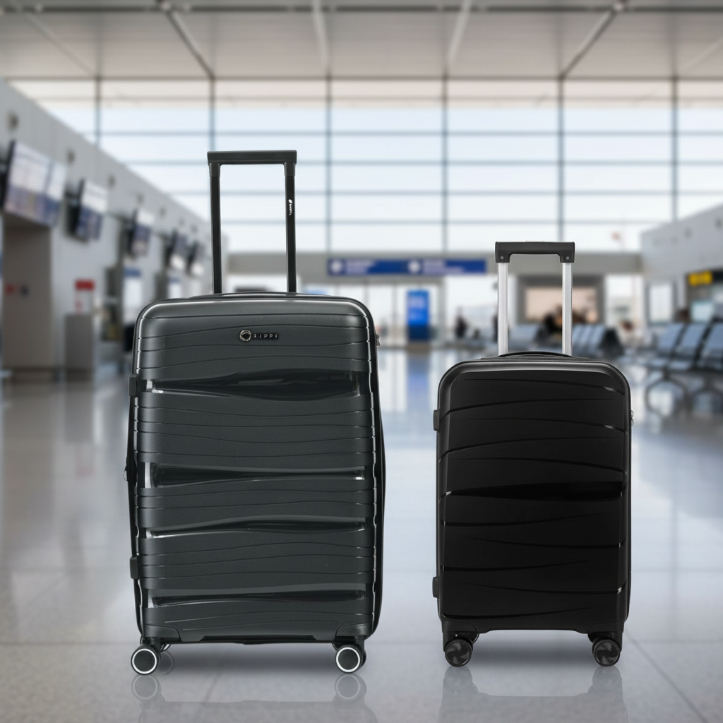 Combo 2 Maletas. Maleta Kippi (L) Rígida Expandible Wavy Negro y Maleta de Cabina (S) Negra
