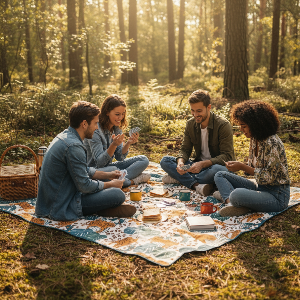 Haz que cada salida al aire libre sea especial con la Manta Picnic Impermeable Beige Tigres. Su diseño con estampado de tigres y hojas tropicales te transporta a un ambiente natural lleno de energía y color. Ideal para la playa, camping o parques, esta manta combina estilo, comodidad y practicidad en cada uso.