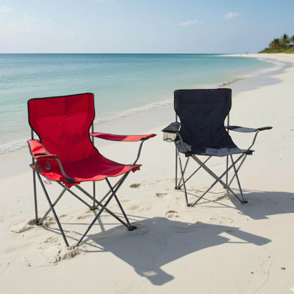 Cuenta con apoyabrazos, portavaso integrado y una estructura de fácil plegado que la hace ideal para tus escapadas.