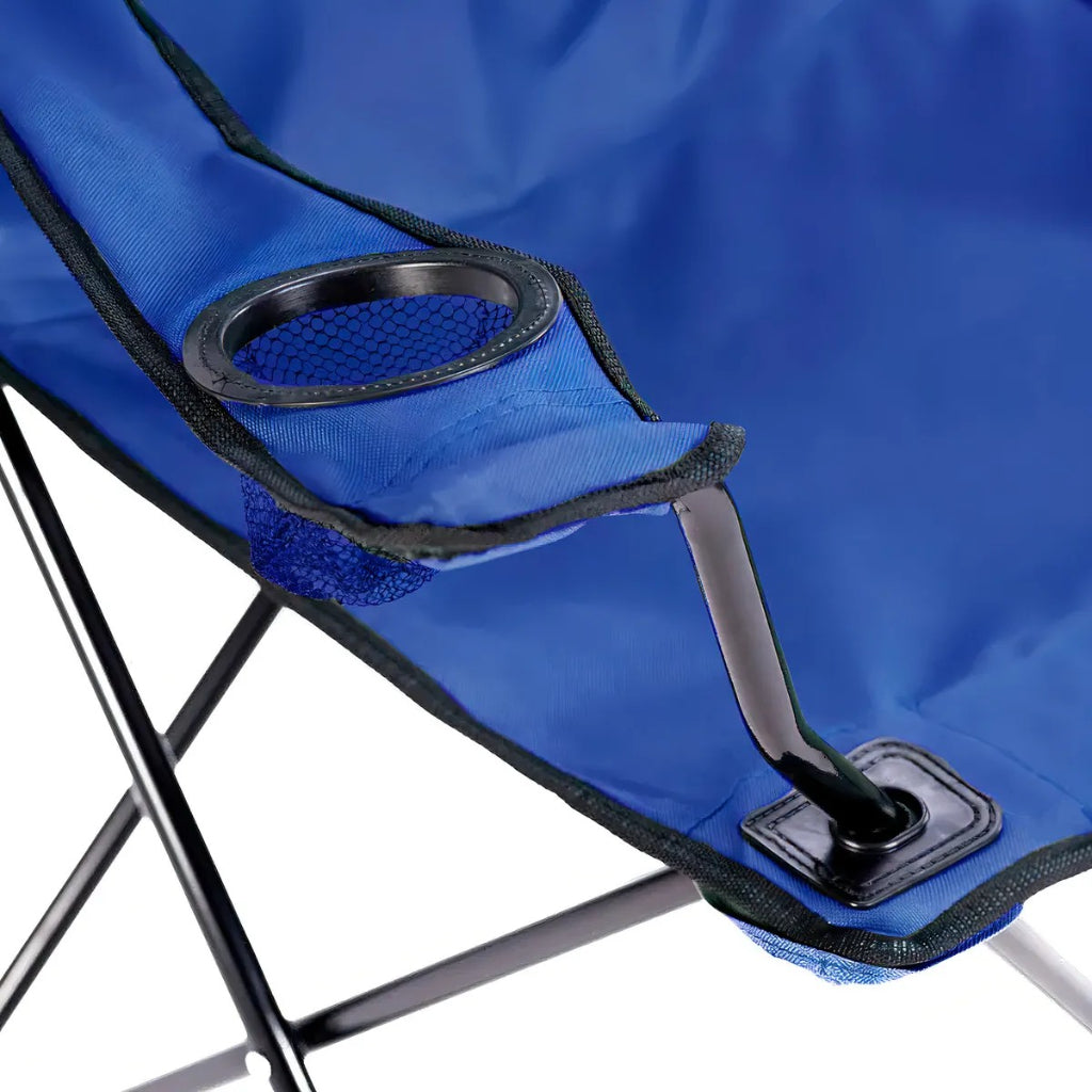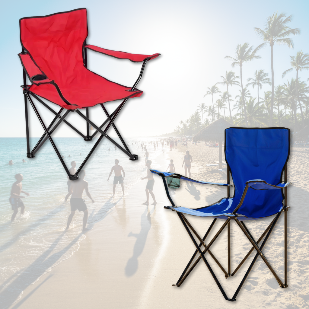 Cuenta con apoyabrazos, portavaso de malla resistente y una estructura de fácil plegado para disfrutar donde quieras con comodidad y estilo.