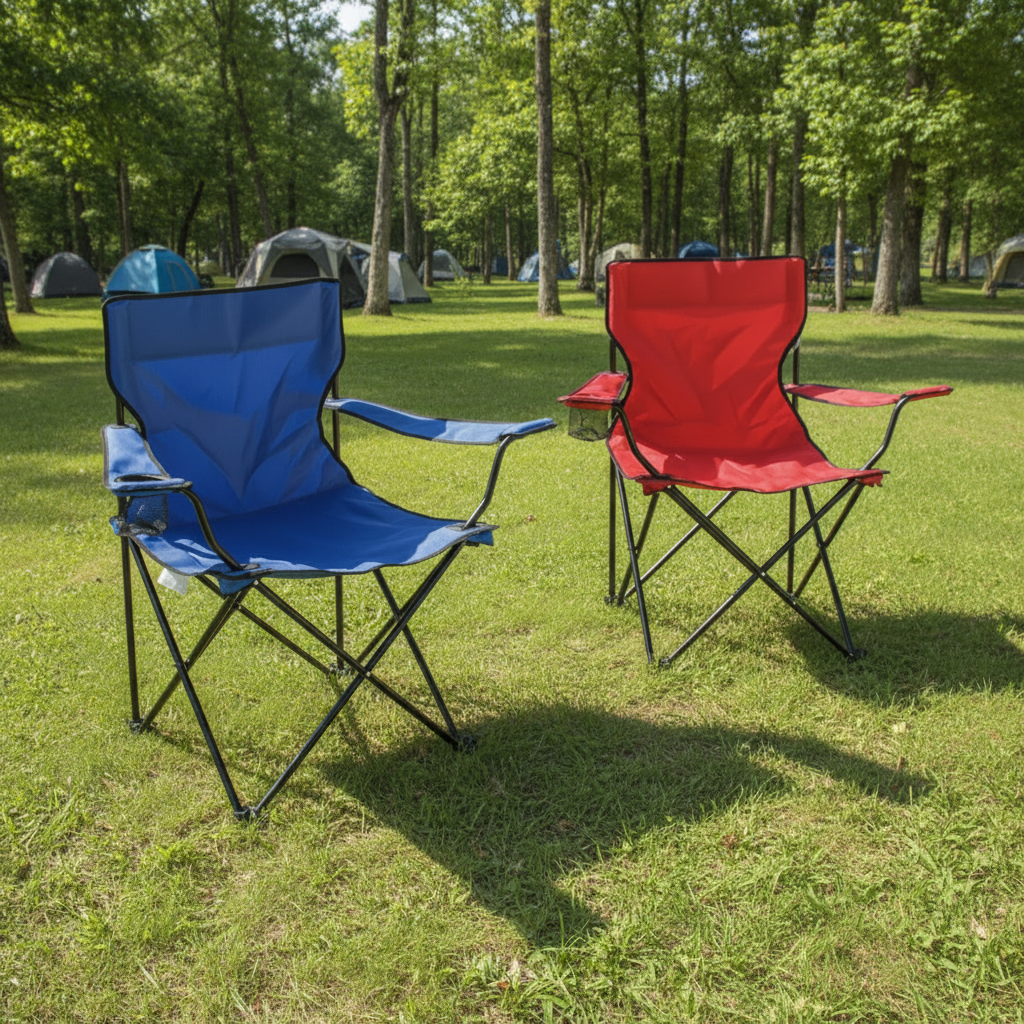 Vive tus días al aire libre con este combo Navigator Celeste y Rojo, ideal para camping o playa con sillas plegables resistentes, cómodas y fáciles de llevar.