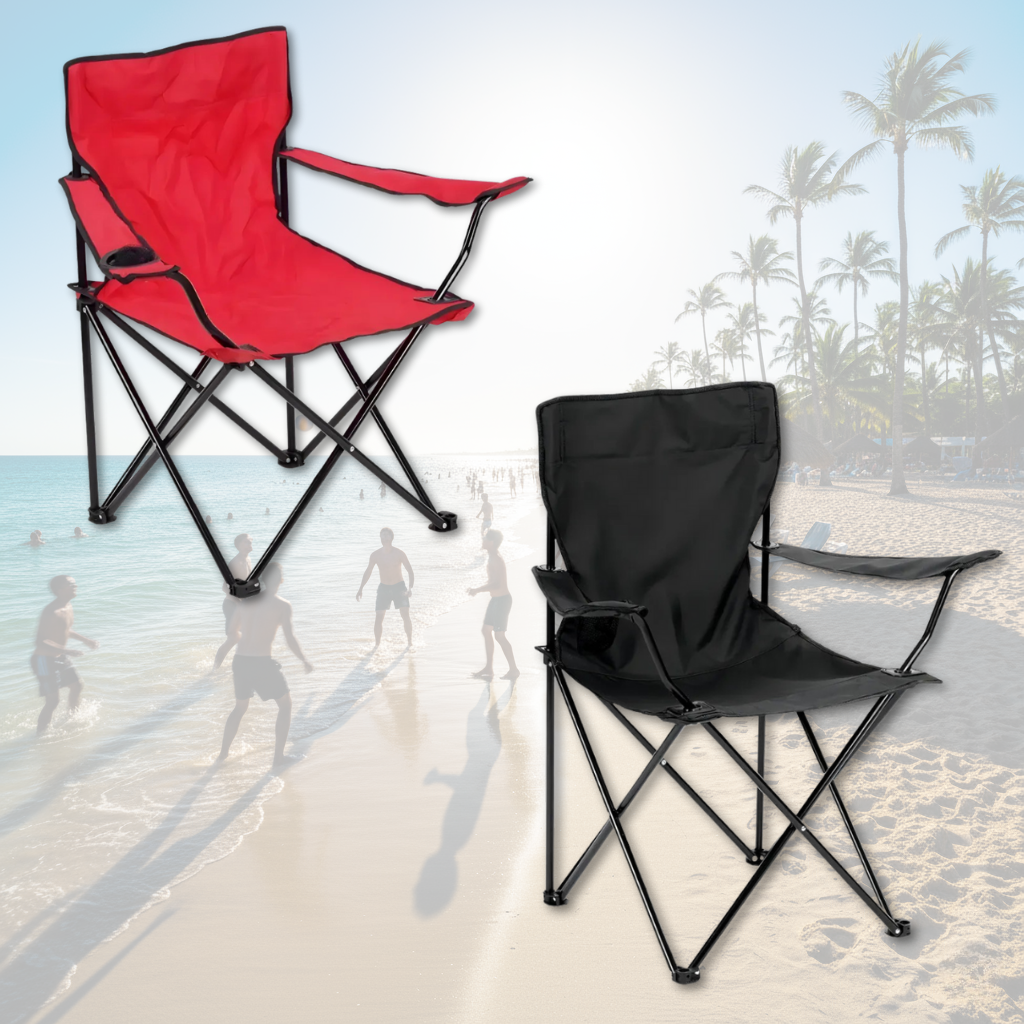 Vive la comodidad en tus aventuras con este combo Navigator Negro y Rojo, ideal para camping, playa o pesca con sillas plegables firmes y fáciles de llevar.