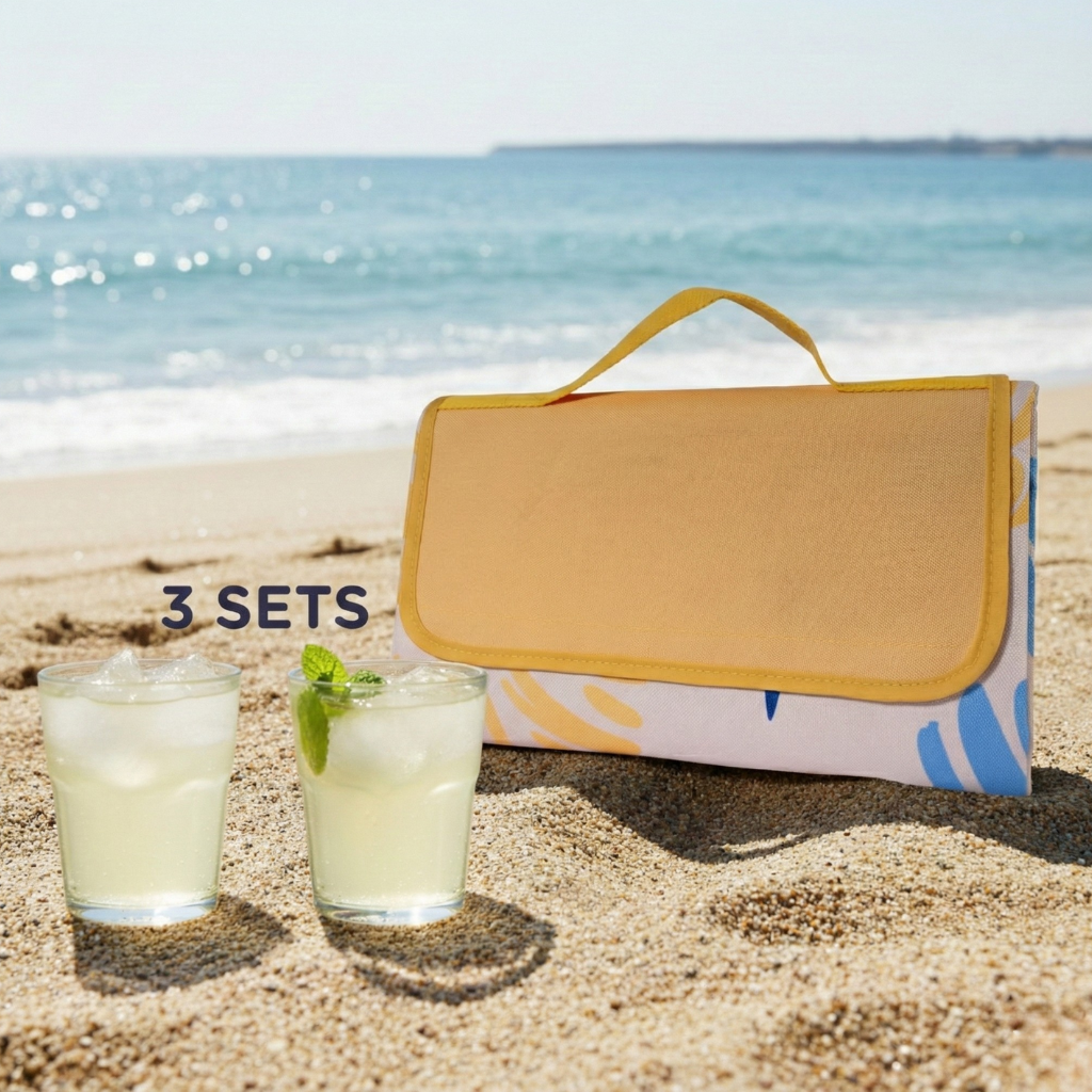 Combo Manta de Picnic Impermeable + 6 Vasos Acrílicos para Agua (3 sets de 2 unidades)