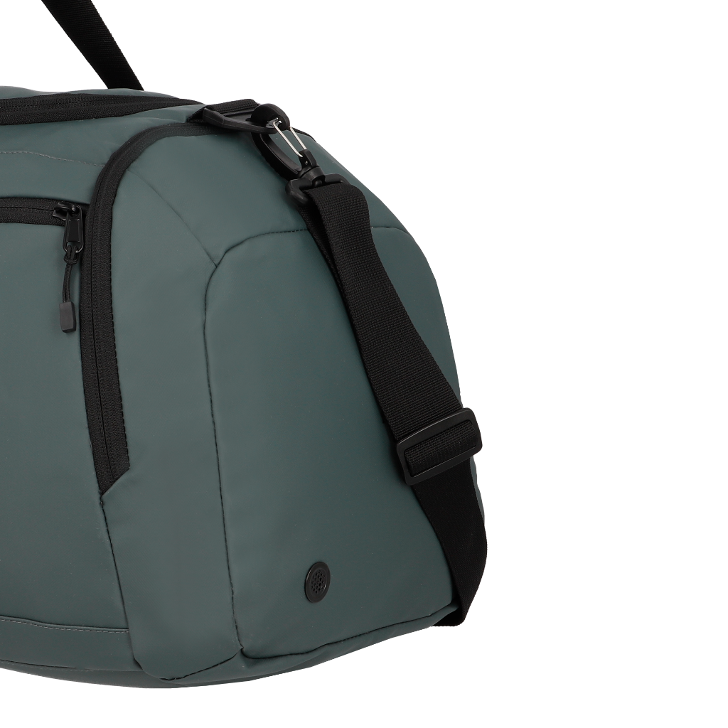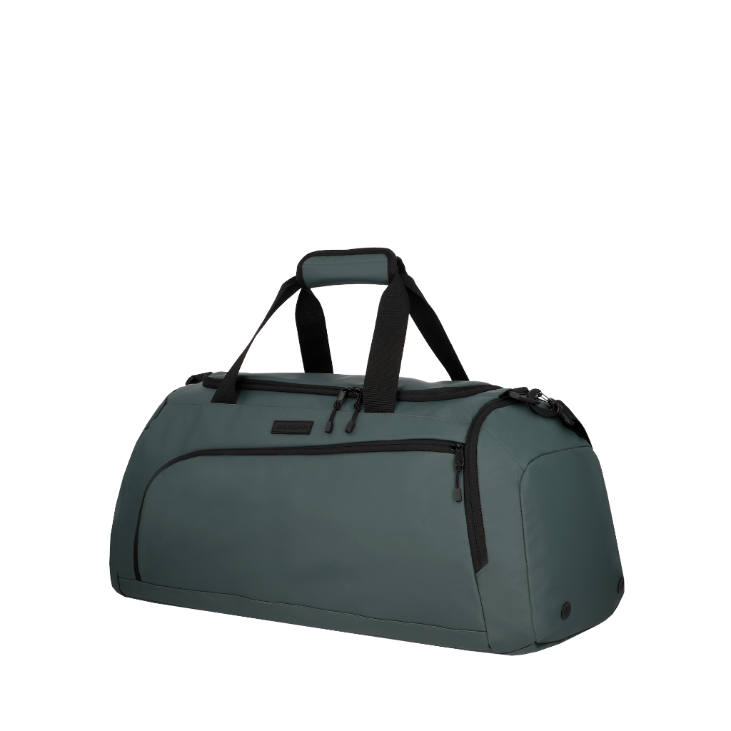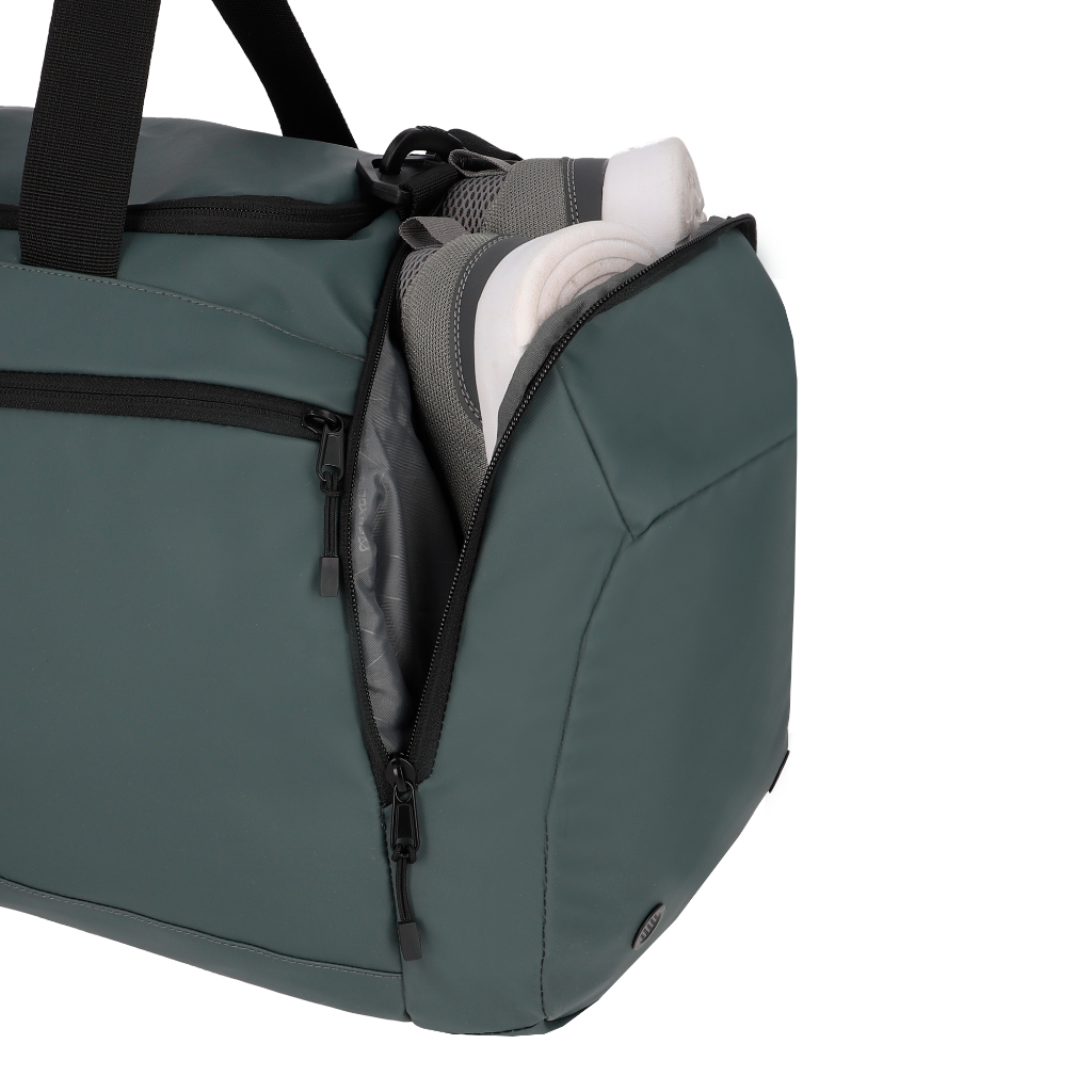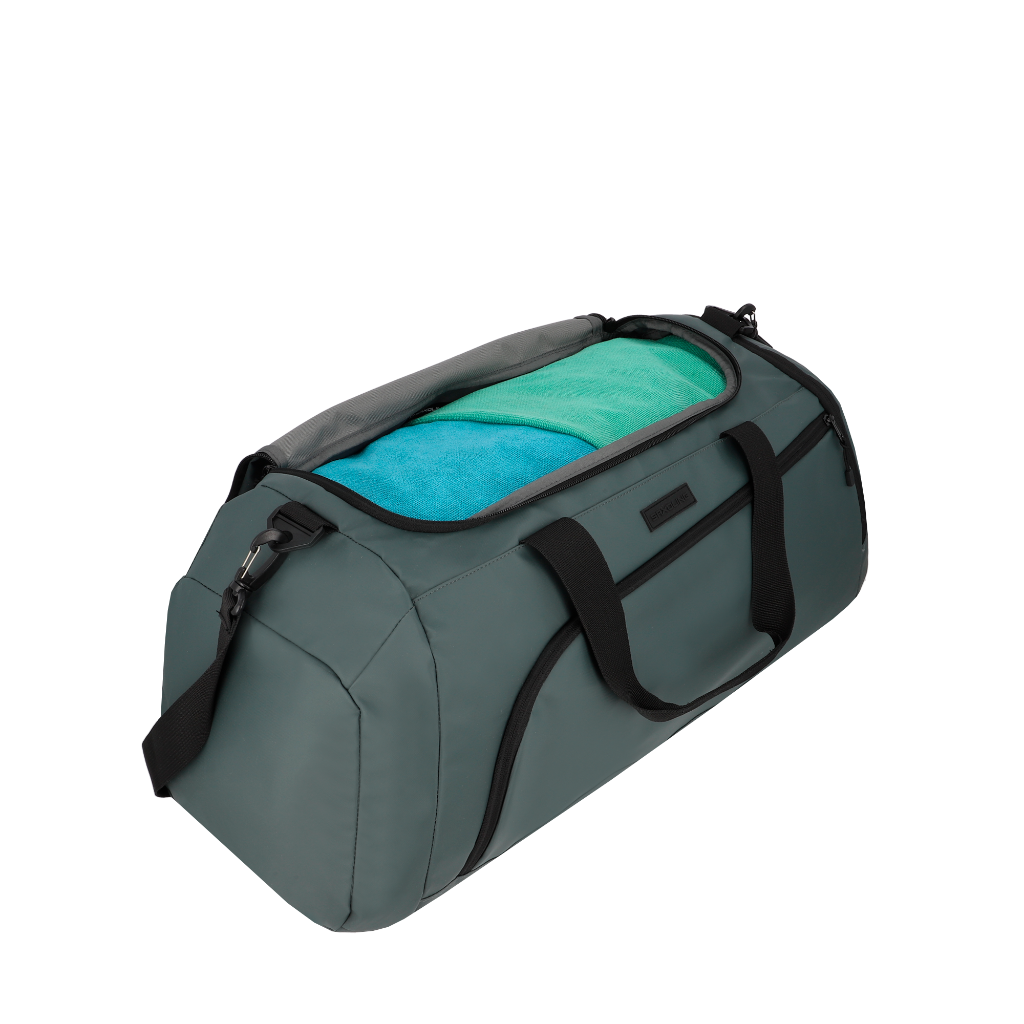 Bolso deportivo de 40 litros, ideal para gimnasio, escapadas o viajes cortos, con un diseño pensado para la organización y el uso diario. Cuenta con compartimento principal, bolsillo frontal, bolsillo lateral para zapatos y correa de hombro ajustable y desmontable para mayor comodidad al transportar. Su material es repelente al agua y de fácil limpieza, perfecto para un estilo de vida activo. Además, su forro está hecho con botellas recicladas, aportando un enfoque más responsable.