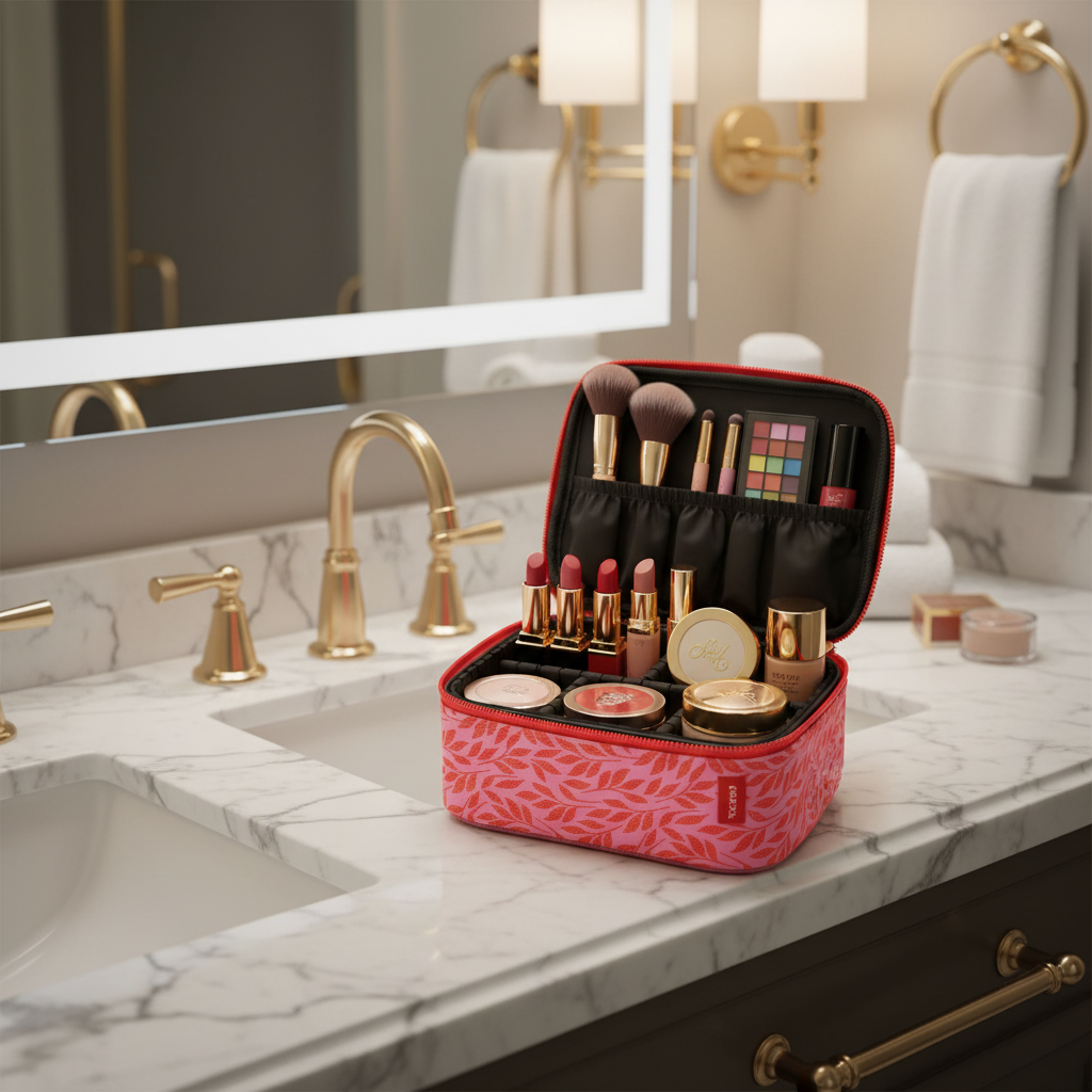 El Cosmetiquero Organizador Gout Rosado te ofrece una manera elegante y práctica de llevar tus productos de belleza. Con su diseño elegante y tonos rosados, te sentirás organizada y lista para cualquier ocasión.