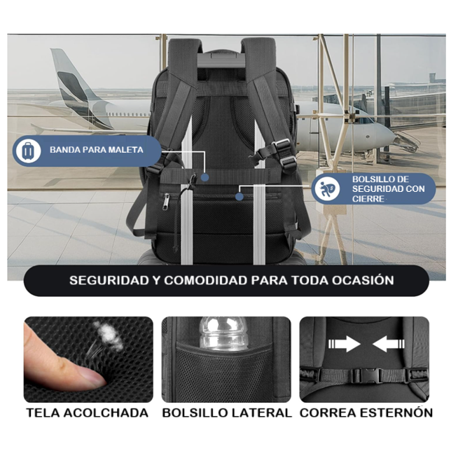 ✨ Versátil y segura, la Mochila Travel 40L es tu mejor aliada para cualquier ocasión.