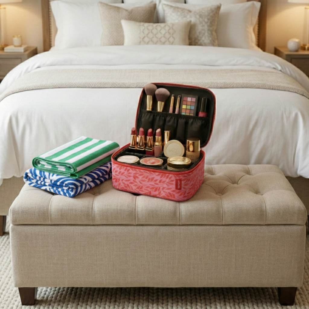 El Cosmetiquero Organizador Gout Rosado te ofrece una manera elegante y práctica de llevar tus productos de belleza. Con su diseño elegante y tonos rosados, te sentirás organizada y lista para cualquier ocasión.