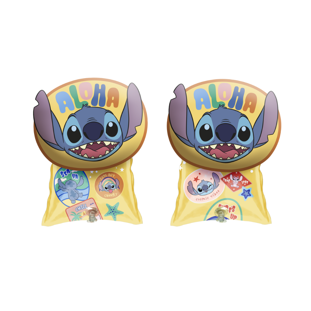 Flotadores de brazo con licencia oficial Disney, inspirados en Stitch. Con un diseño divertido con un círculo en 3D con la cara de Stitch y el texto Aloha, estos flotadores son fáciles de inflar y brindan apoyo a los pequeños nadadores. Fabricados con materiales duraderos y de alta calidad, estos flotadores inflables aportan comodidad y seguridad, convirtiéndose en el accesorio perfecto para disfrutar en piscinas, playas y otros entornos acuáticos.