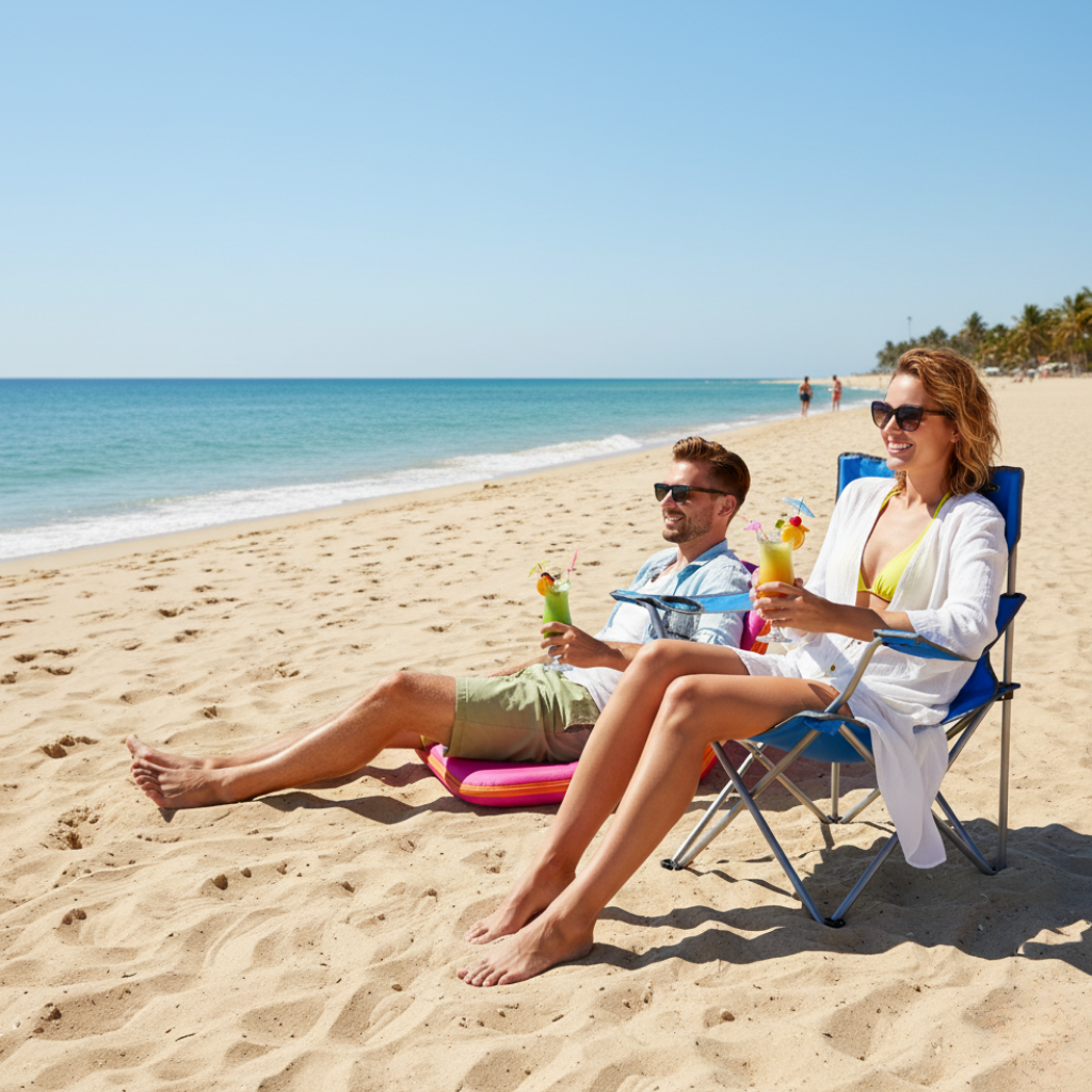 Reposera versátil con ajuste en 5 posiciones, ideal para relajarte en parques o playas. Diseñada con tela repelente al agua, ofrece comodidad y resistencia. Su mango superior y tirante integrado hacen que sea fácil de llevar a cualquier lugar. Dimensiones: 65 x 42,5 x 4,5 cm.