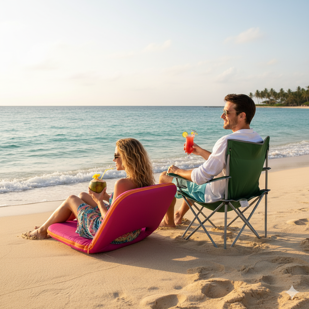 Reposera versátil con ajuste en 5 posiciones, ideal para relajarte en parques o playas. Diseñada con tela repelente al agua, ofrece comodidad y resistencia. Su mango superior y tirante integrado hacen que sea fácil de llevar a cualquier lugar. Dimensiones: 65 x 42,5 x 4,5 cm.