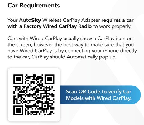 - Compatibilidad: con más de 600 modelos de vehículos compatibles con el adaptador inalámbrico Bluetooth CarPlay. Consulte nuestra lista de compatibilidad en nuestras imágenes QR para ver si el MODELO y el AÑO de su automóvil están en la lista.