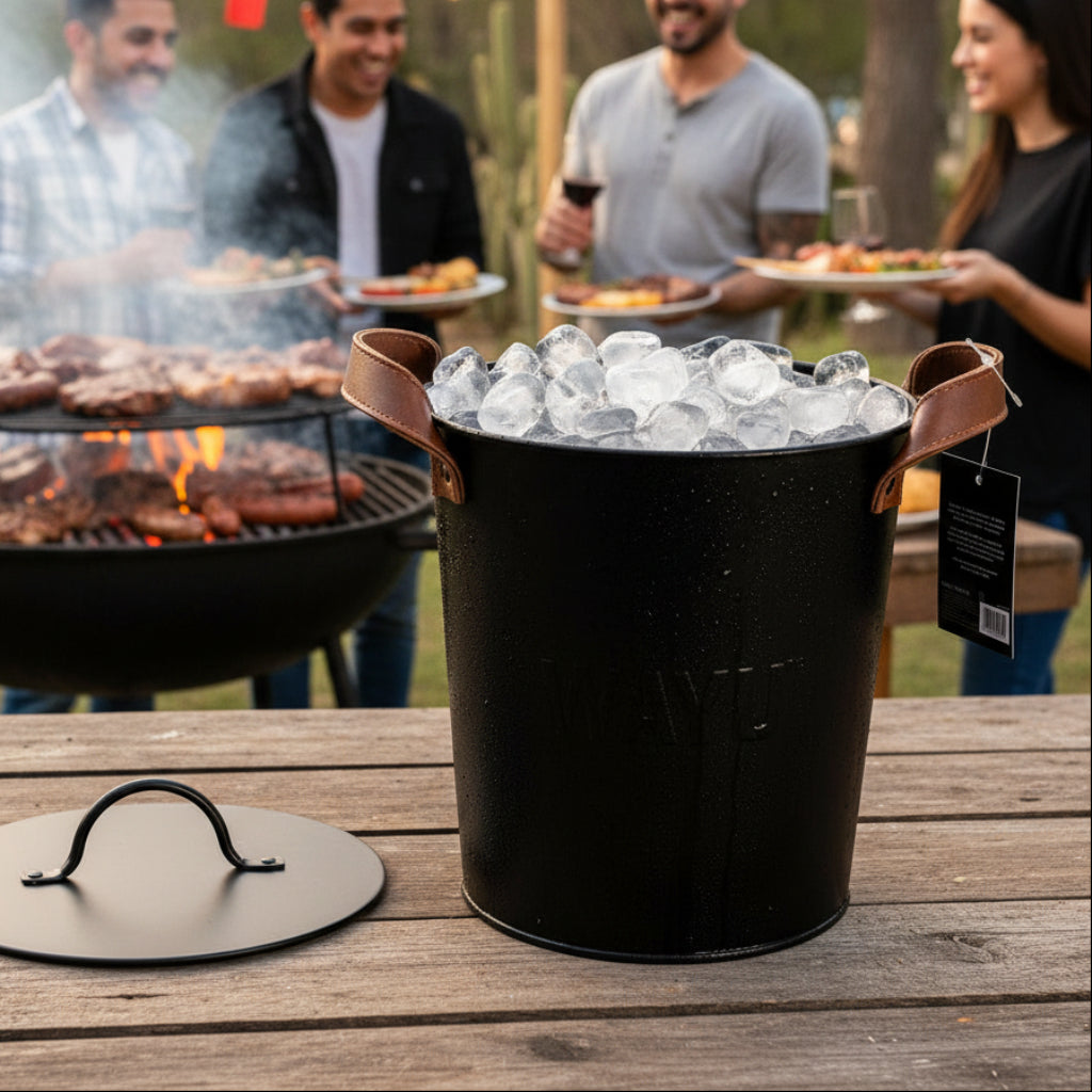 La hielera metálica Wayu eleva cualquier reunión con su diseño elegante y resistente. Ideal para asados, terrazas o momentos especiales, mantiene tus bebidas frías mientras aporta un toque sofisticado a tu mesa. Sus asas de cuero sintético hacen que sea cómoda de transportar, y su tapa metálica ayuda a conservar el hielo por más tiempo.