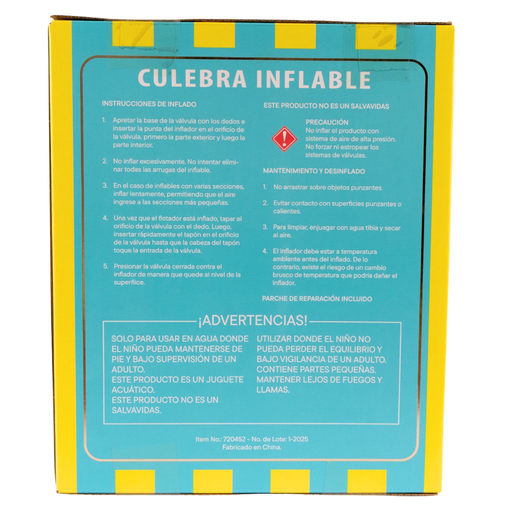 🐍 ¡Diviértete bajo el sol con el Inflable Culebra! Su diseño colorido y curvado lo convierte en el accesorio ideal para niños y adultos que buscan flotar, relajarse o jugar en el agua. Perfecto para disfrutar días llenos de verano, risas y frescura.
