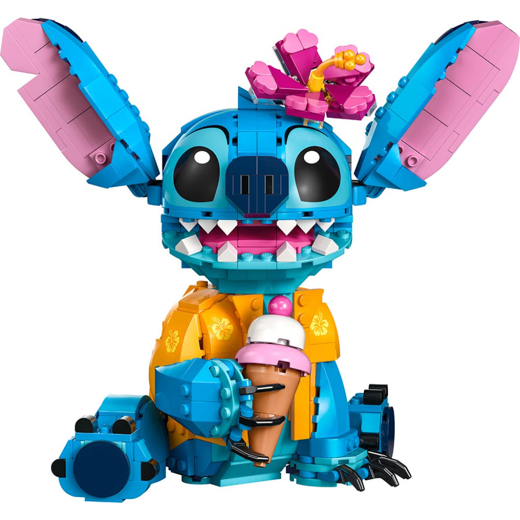• Stitch, elpersonaje Disney: Este creativo set de construcción LEGO® incluye un modelo de exposición basado en Lilo & Stitch, un cucurucho de helado construible y una flor de adorno para el personaje.