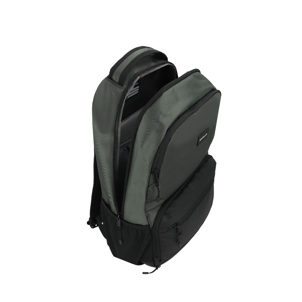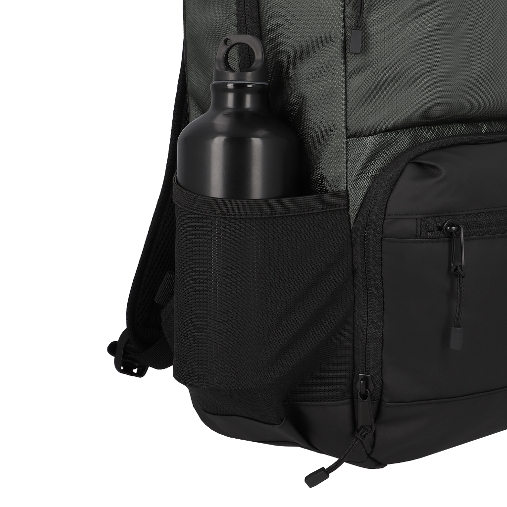 Mochila juvenil de 30 litros, ideal para el día a día, estudio o viajes. Cuenta con compartimento principal, dos bolsillos frontales, bolsillo lateral para botella y banda para maleta, perfecta para mayor comodidad al transportar. En su interior incluye bolsillo para laptop de 16''. Además, su forro está hecho con botellas recicladas, aportando un toque más responsable sin perder estilo y funcionalidad.