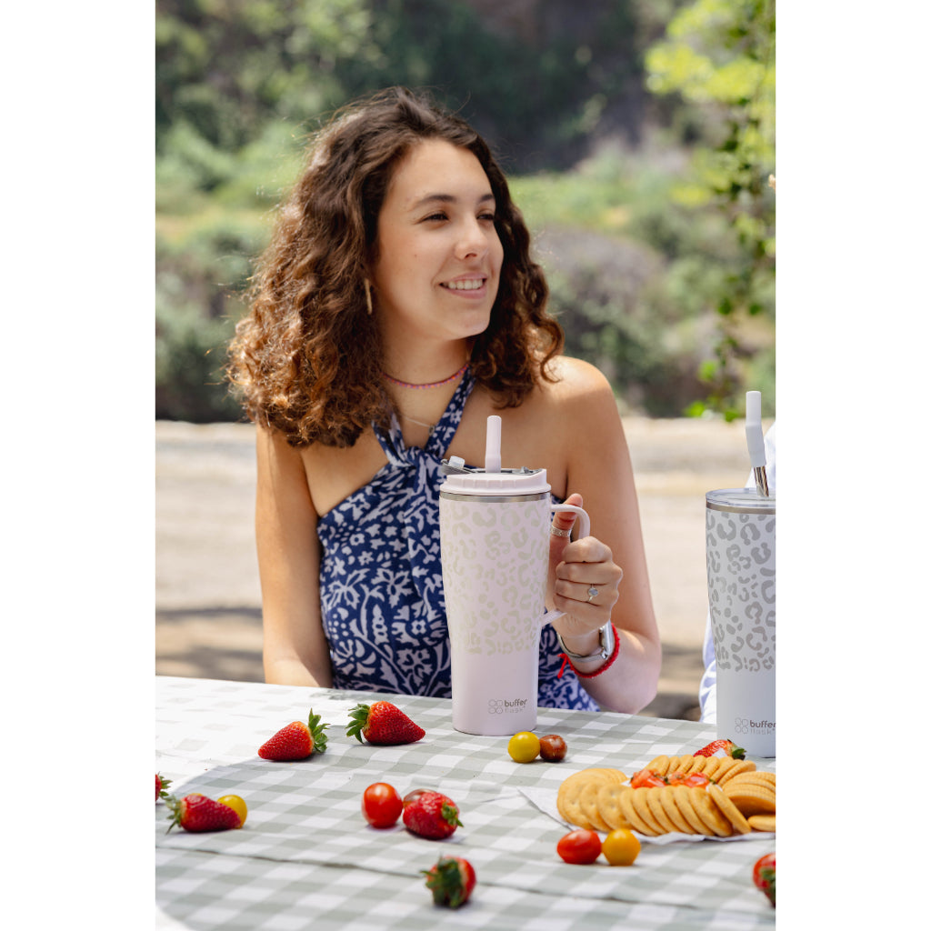 Mug Vaso Térmico Buffer Roques 1Lt + 2 Tapas Pinky Leopardo