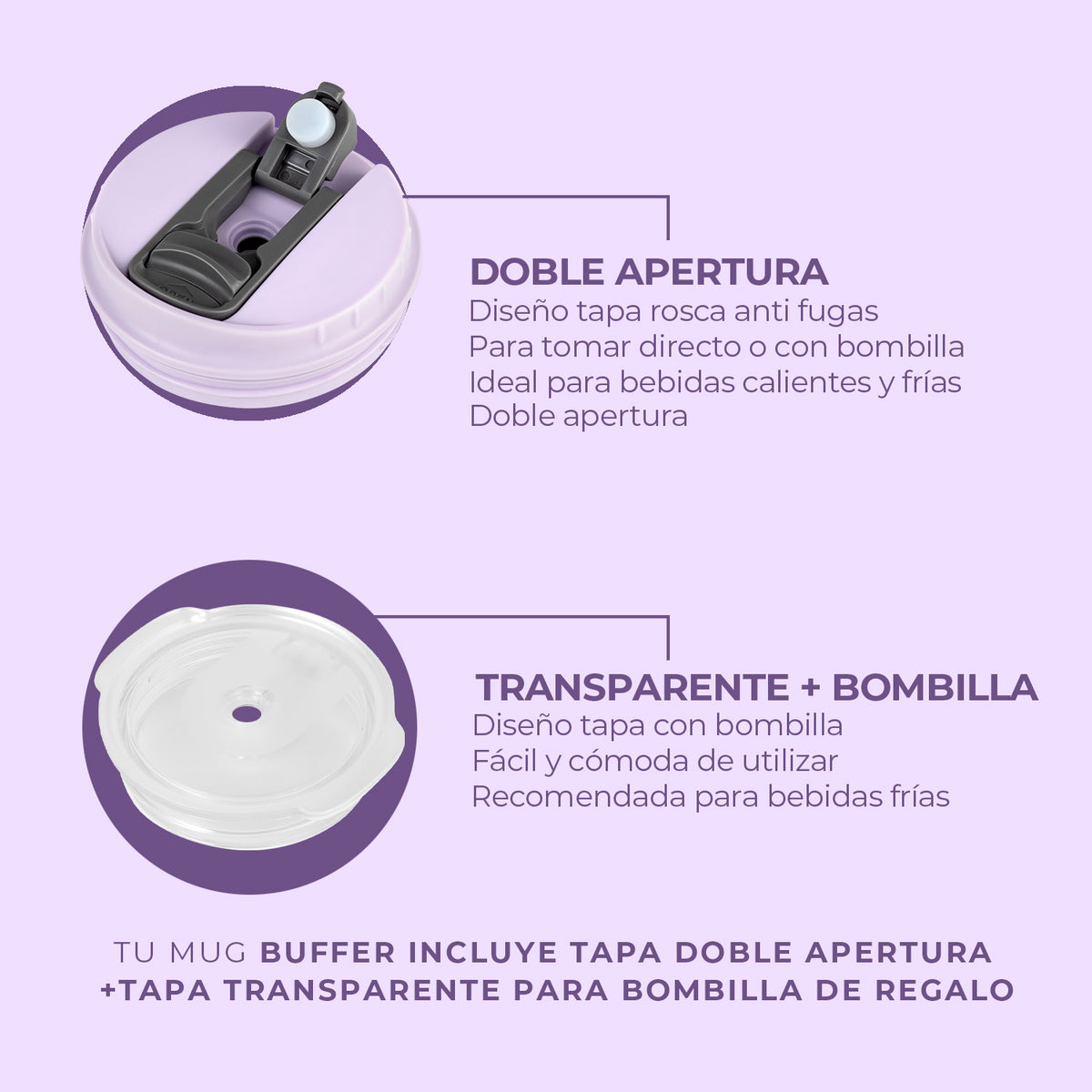 El Mug Vaso Térmico Buffer Roques 750ml Soak Liliac es la mezcla perfecta entre estilo y funcionalidad. Su diseño con bombilla metálica reutilizable y 2 tapas intercambiables lo convierte en el compañero ideal para disfrutar tus bebidas frías hasta 12 horas o calientes hasta 6. Fabricado en acero inoxidable 304, libre de BPA y antiderrames, es resistente, práctico y fácil de llevar a todos lados.