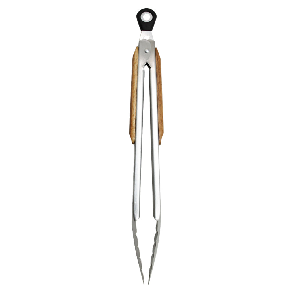 Material: Detalles de madera acacia, Acero inoxidable. Pinza 12"