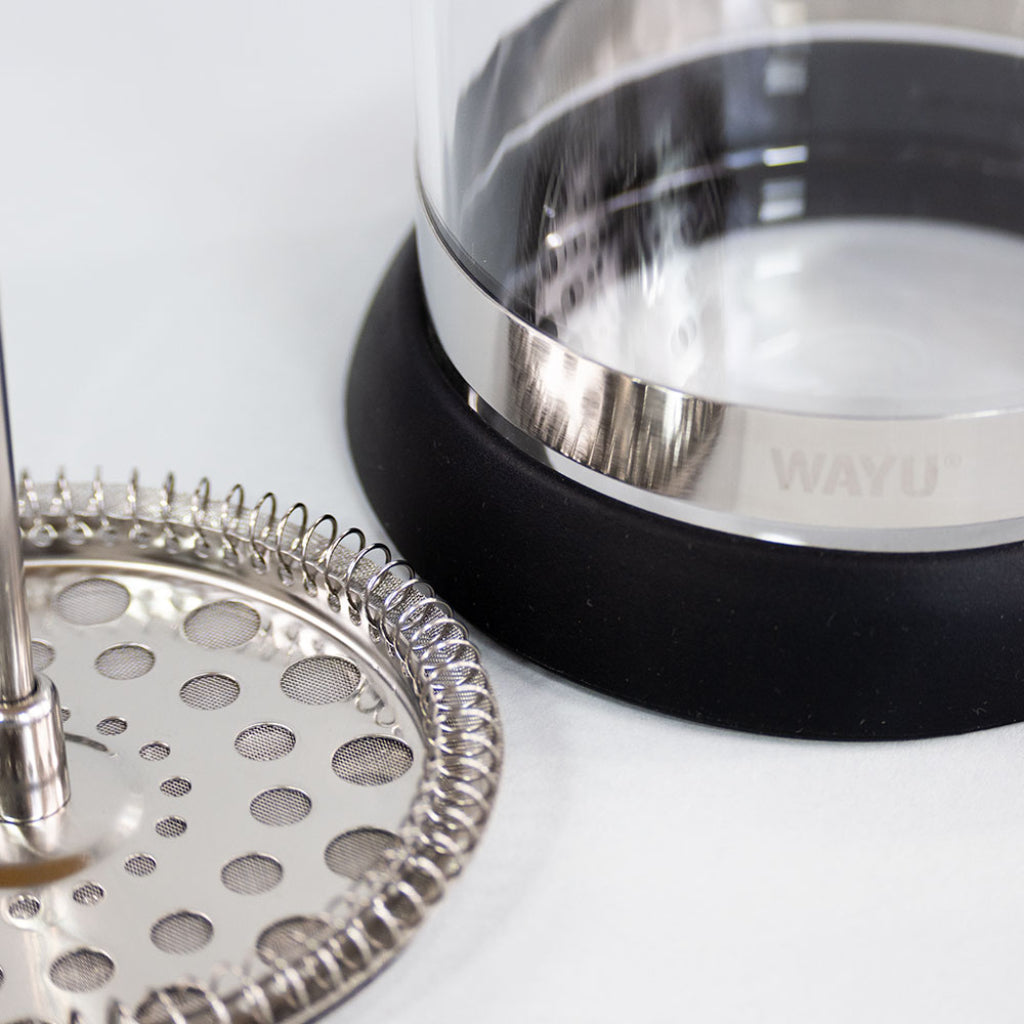 Disfruta de un café lleno de aroma y sabor con la Prensa Francesa Wayu de 800 ml, diseñada para quienes buscan una preparación natural y auténtica. Su estructura combina vidrio resistente al calor, acero inoxidable y detalles en bambú, logrando un diseño elegante, duradero y perfecto para cualquier cocina. Ideal para café, té o infusiones, permite extraer aceites y sabores completos para obtener una bebida intensa y equilibrada.