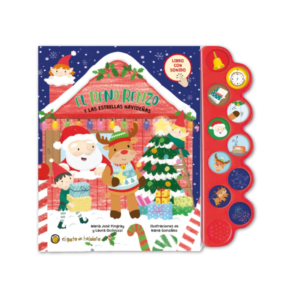 Renzo, un pequeño reno lleno de ilusión, sueña con ser el ayudante de Santa, pero un giro inesperado lo convierte en el guardián de las estrellas navideñas. Con páginas de cartón resistente y diez botones de sonido que acompañan cada escena, este libro invita a los niños a participar activamente mientras siguen la valiente travesía de Renzo. ¡Presiona los botones y deja que los sonidos mágicos den vida a la historia!
