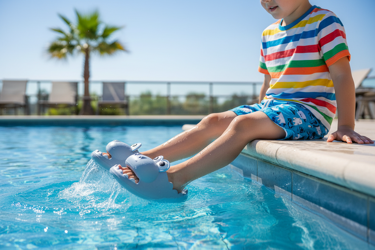 Sandalia Infantil Cocodrilo Goma AzulDescripción