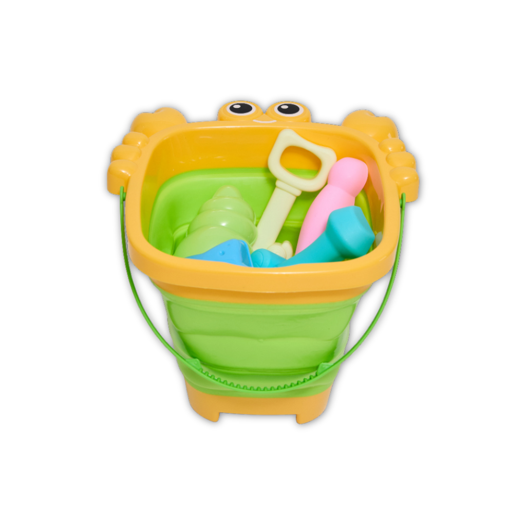Set Balde Plegable de Cangrejo con 2 Herramientas y 4 Moldes de Playa