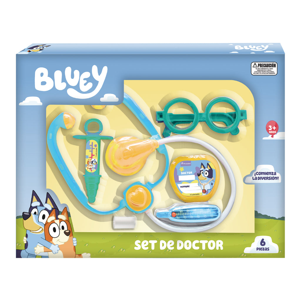 ¡Conviértete en el doctor más divertido con Bluey! Este set incluye 6 piezas para que los más pequeños puedan explorar el mundo de la medicina.